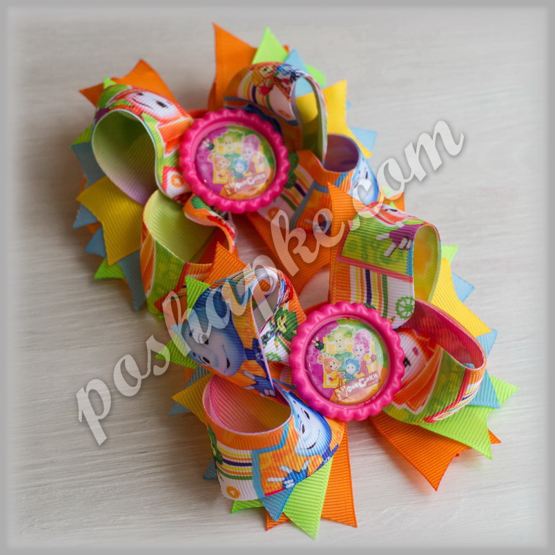 Размер 9х9 см, крепление — бесшовная резинка. Любимейшие детские персонажи, яркие бантики.